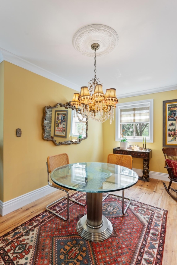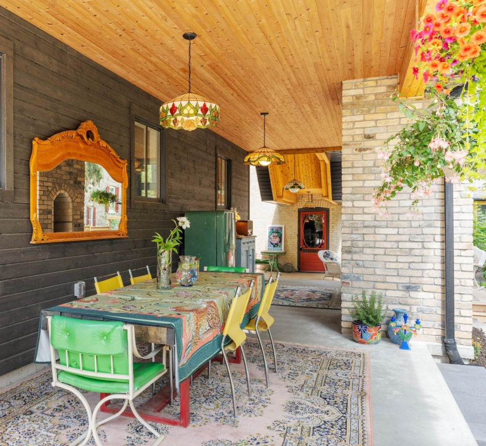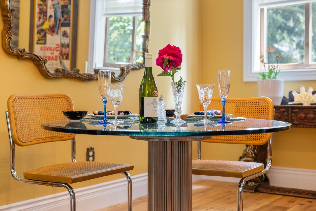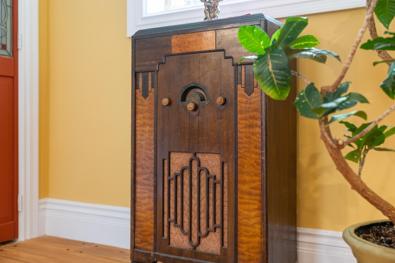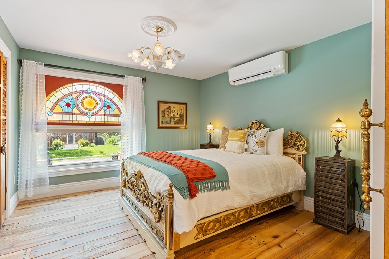 Nestled in a lush garden oasis, this Victorian-inspired Carriage House exudes eclectic charm. It features rustic wooden floors, antique chandeliers, stained glass windows, majestic pocket doors, a wood-burning stove, a clawfoot tub, and a fully equipped kitchen.