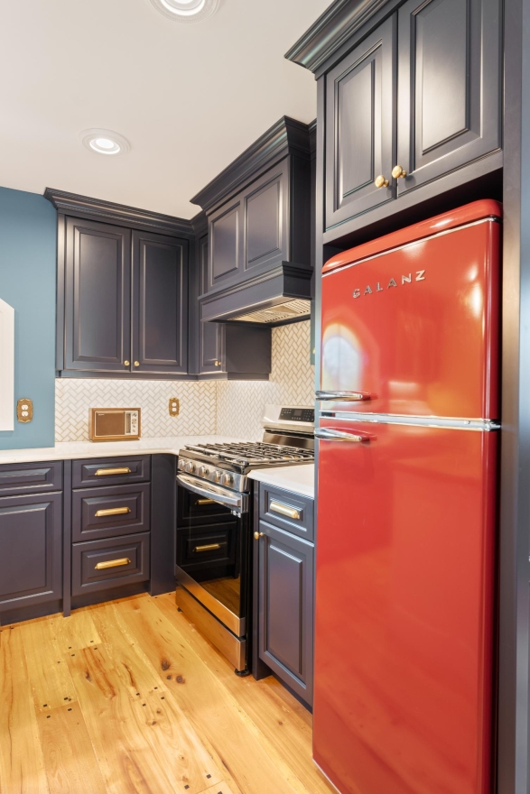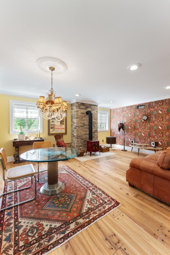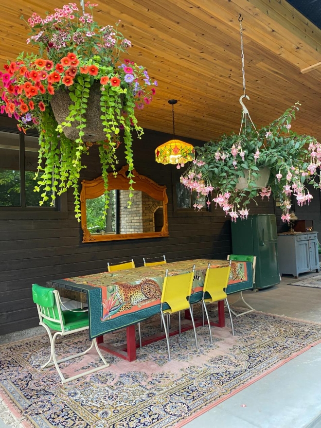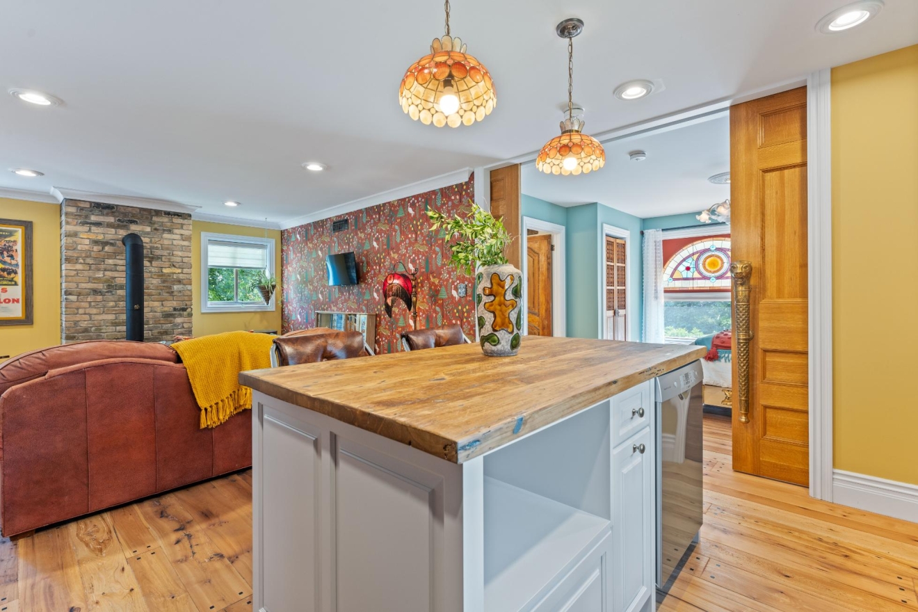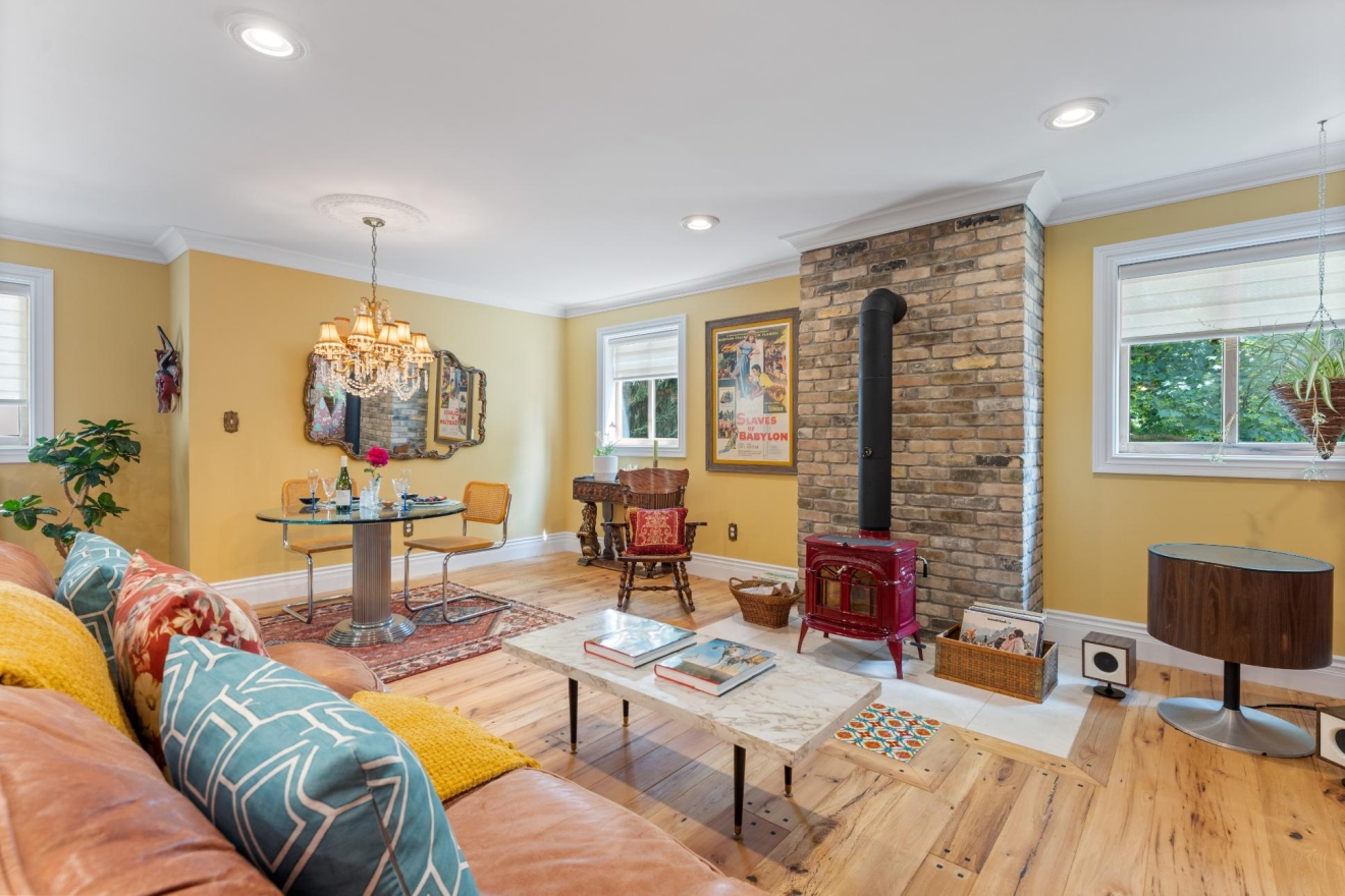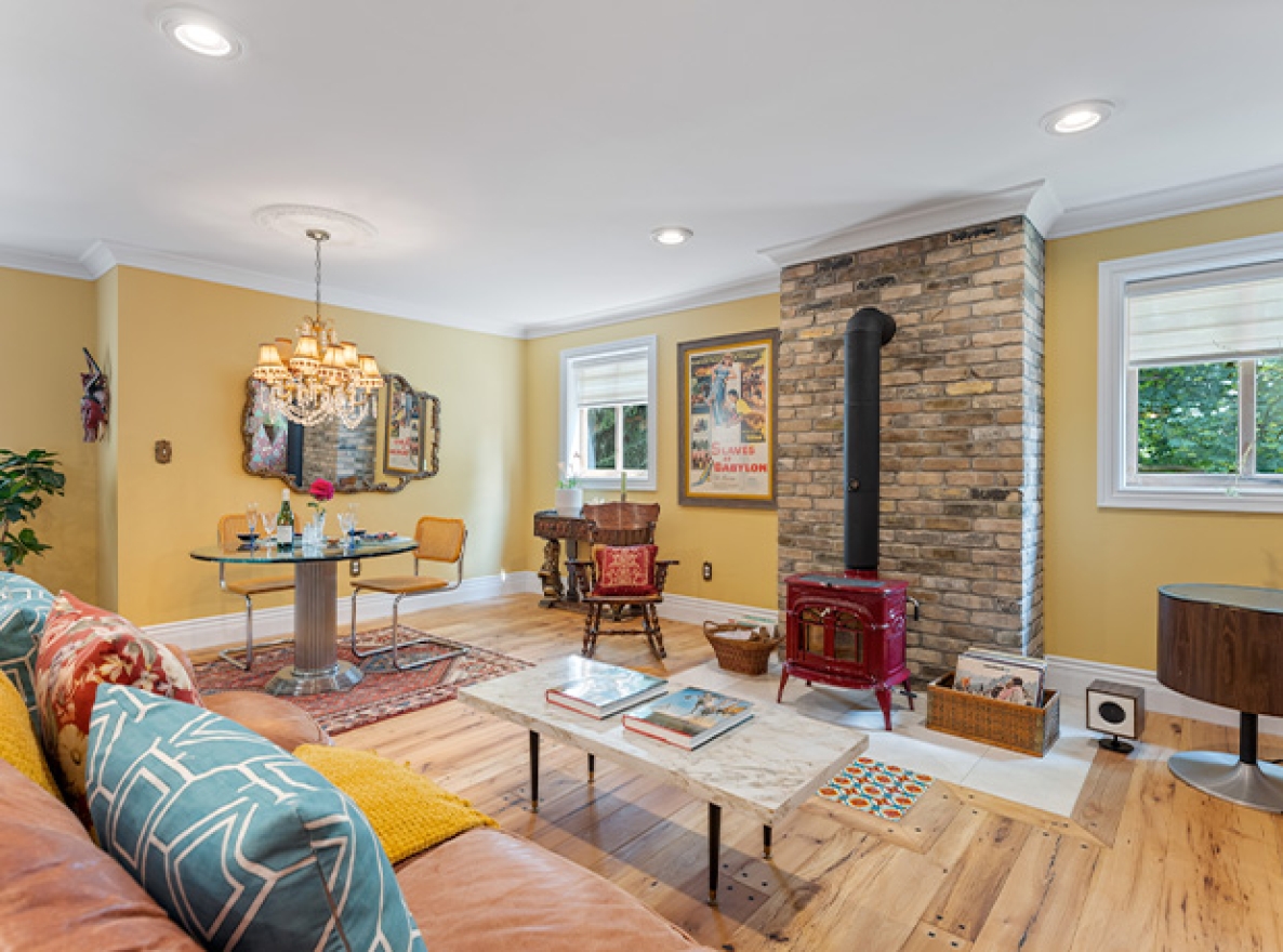 Nestled in a lush garden oasis, this Victorian-inspired Carriage House exudes eclectic charm. It features rustic wooden floors, antique chandeliers, stained glass windows, majestic pocket doors, a wood-burning stove, a clawfoot tub, and a fully equipped kitchen.