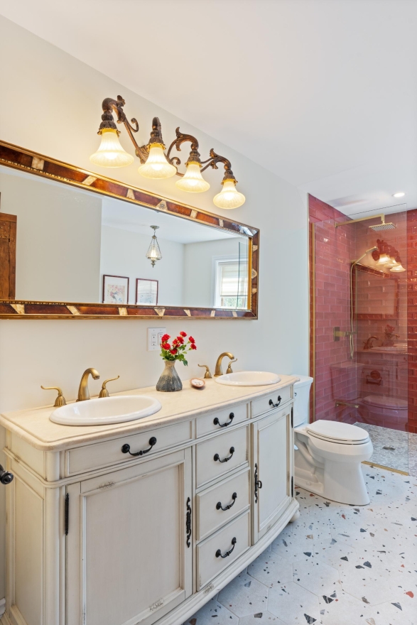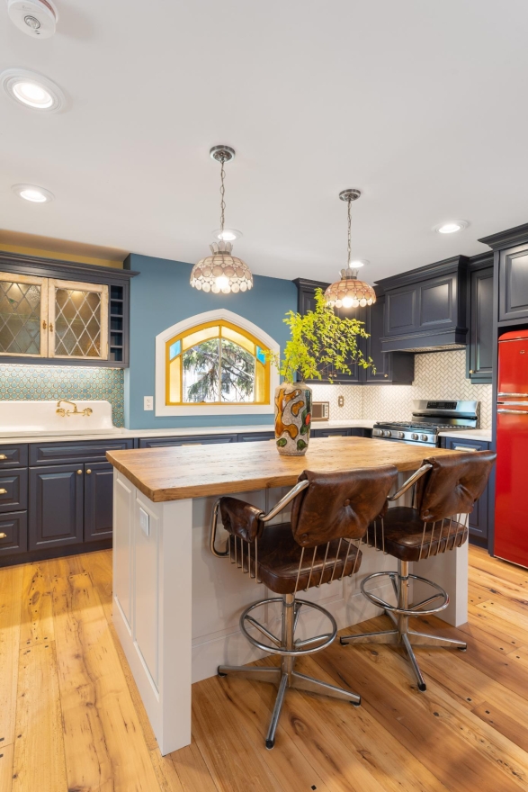 Every detail was thoughtfully curated, from handmade Mexican tiles and leopard brass door handles to a reclaimed kitchen island and Italian Cesca chairs, bringing grandeur to life.