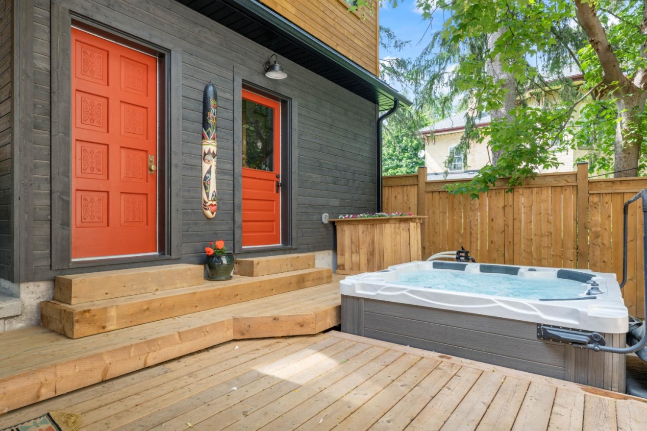 The project was to create a luxurious, upmarket short-term rental that complemented a century-old main house. This was achieved using reclaimed materials and fixtures.